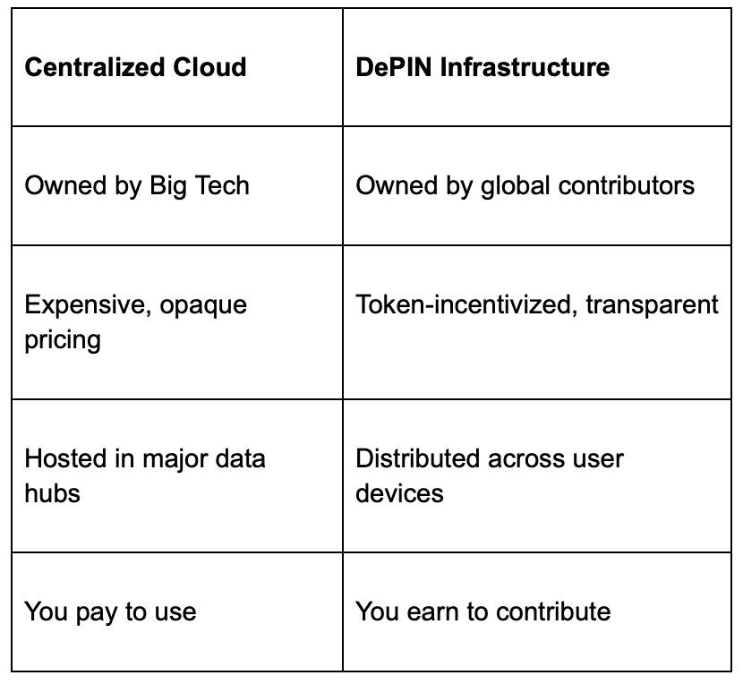 DePIN doesn't reject the cloud; it rebuilds it from the ground up, using distributed networks, user-owned devices, and blockchain-based coordination.