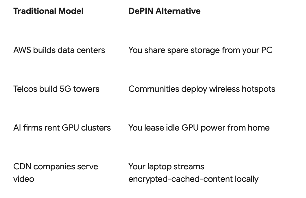 That's the idea behind Decentralized Physical Infrastructure Networks. It's a new class of Web3 technologies where everyday people contribute to providing infrastructure for the digital world by leasing their unused resources in exchange for rewards from global enterprises that are looking to save money on reliable, safe and secure web services.